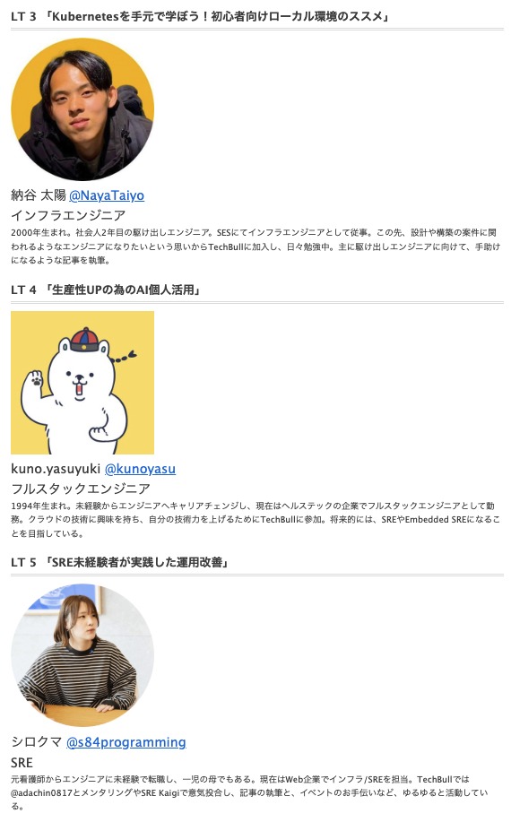 今回のLTイベントは、TechBull運営メンバーが登壇となります。以下のような方々に特におすすめです。