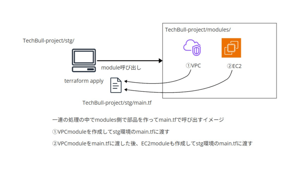 - TechBull-project/stg/modules/vpc/variables.tf ※module側の変数の値を記述