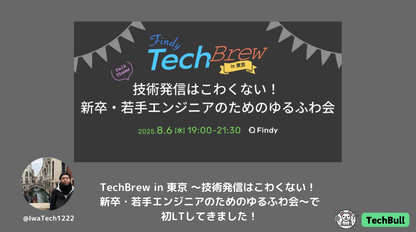 TechBull内で安達さん(@adachin0817)がFindyで若手向けのLT登壇イベントがあると共有いただき、そこで安達さんに背中を押してもらい、せっかくの機会なので登壇してみようと思ったのがきっかけです。