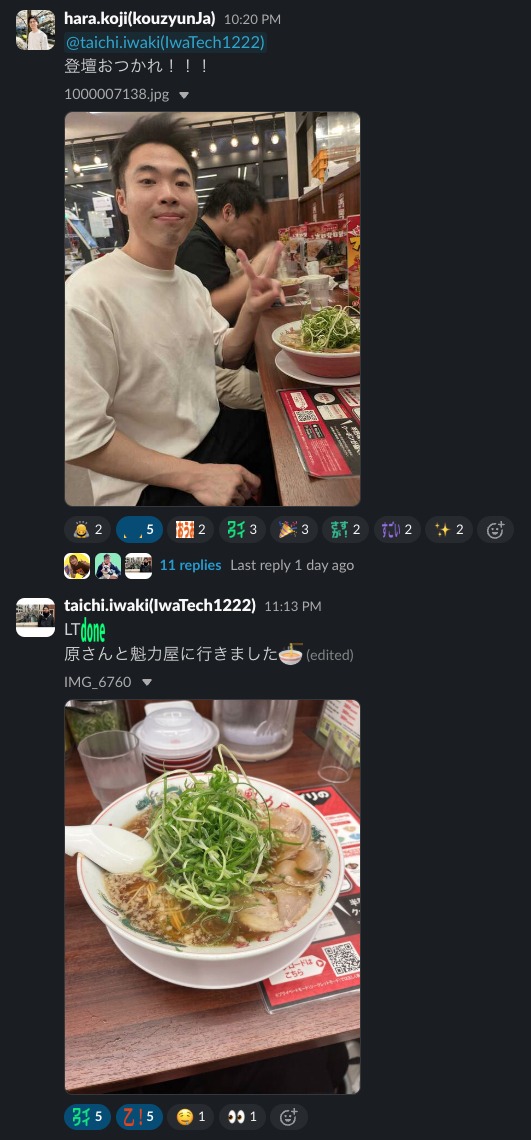 LT登壇を通して、技術ブログを書いていても感じますが、これらのアウトプットは人に見られるので、見た人がわかるように説明する能力と自分の理解の解像度を上げられると感じました。その中でもLT登壇は現地にいる方と新しい繋がりを作ることができる点が素晴らしいと思いました。今後はアウトプットする量を増やしつつ、質も意識していけたらなと思います。