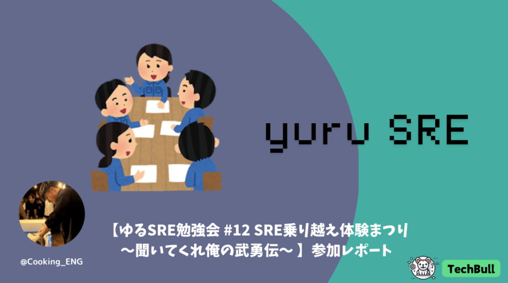 こんにちは!TechBull 運営チームの@Cooking_ENG です!今回、ゆるSRE勉強会 #12 SRE乗り越え体験まつり 〜聞いてくれ俺の武勇伝〜に参加してきたので参加レポートとしてブログに残したいと思います!
