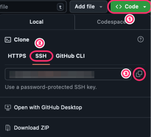 SSHをクリック後、③をクリックしてコピー