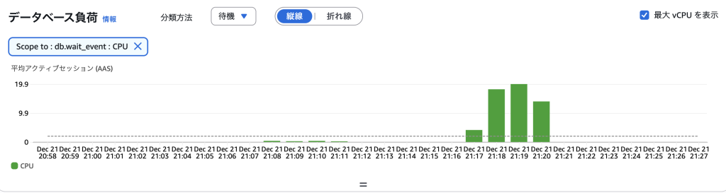 まずは、平均アクティブセッション (AAS)を超えていないかを見ます。